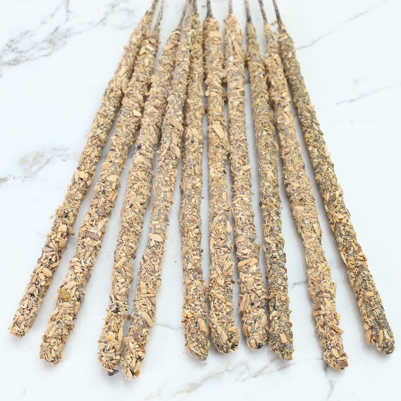 - Hecho con pétalos de rosas, resina de olíbano africanas, carbón natural, sal, aglutinantes naturales