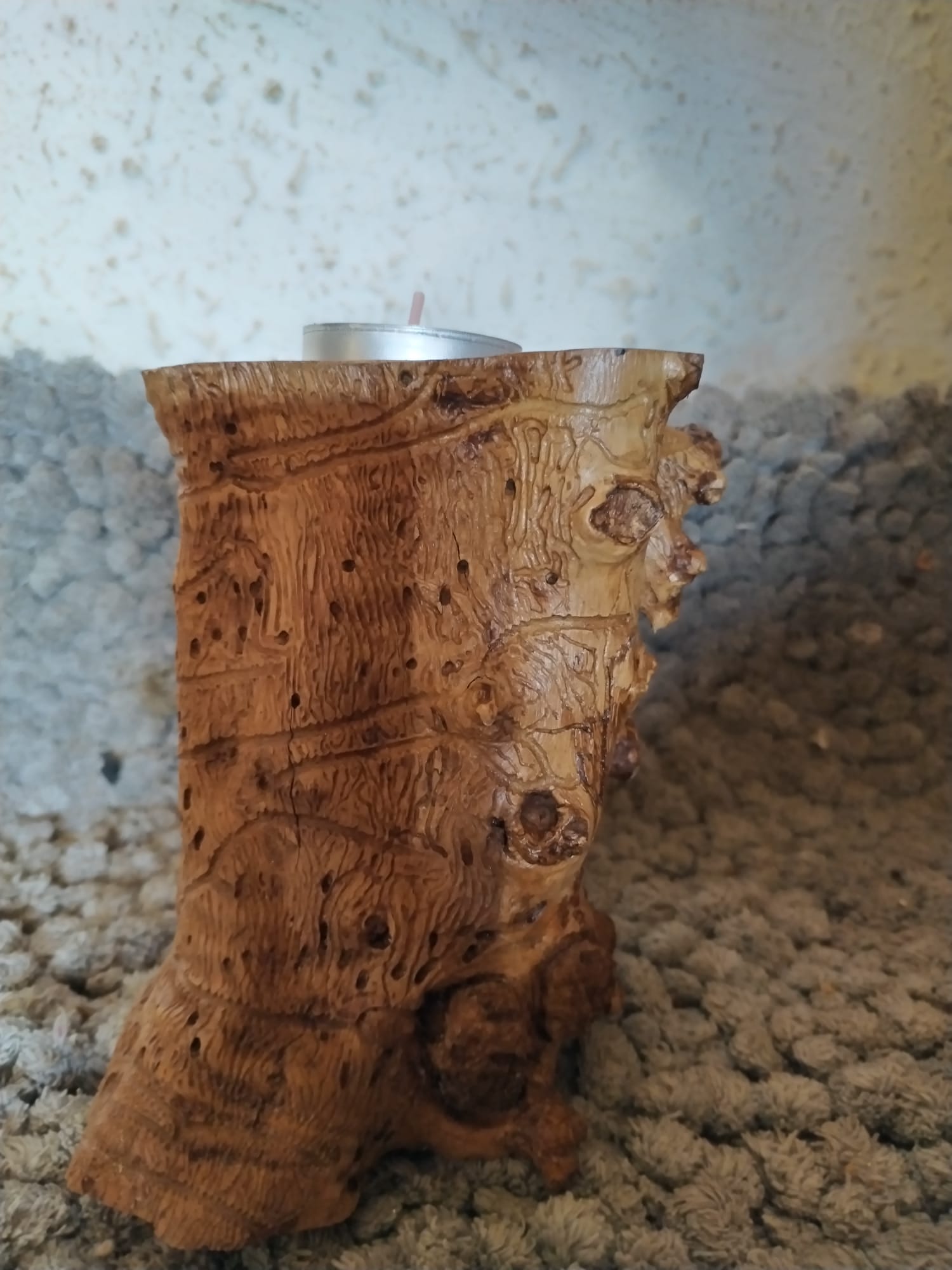 Soporte para vela de té de madera natural